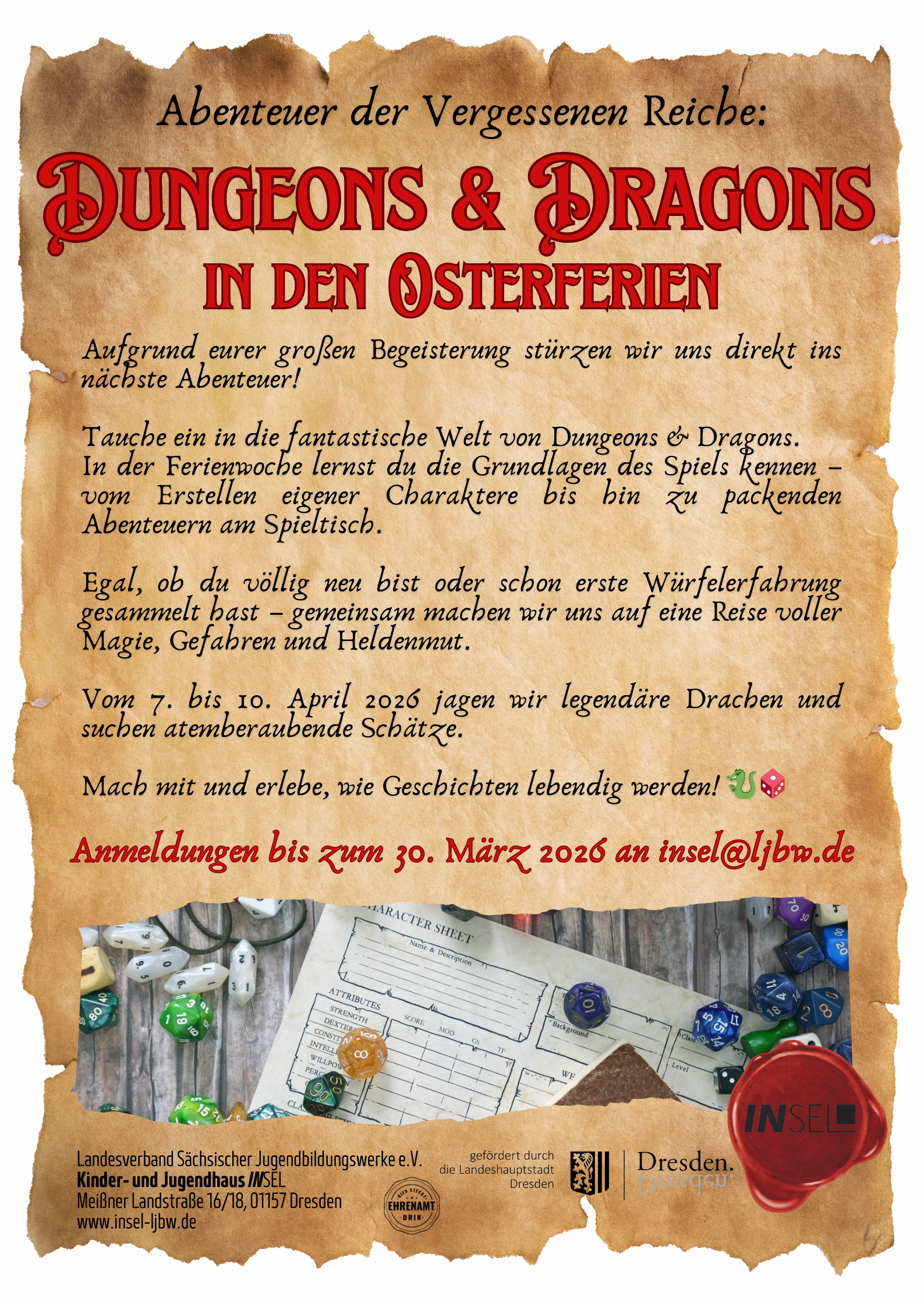 Endlich ist unser Osterferienprogramm fertig! Für beide Angebote müsst ihr euch vorher anmelden!